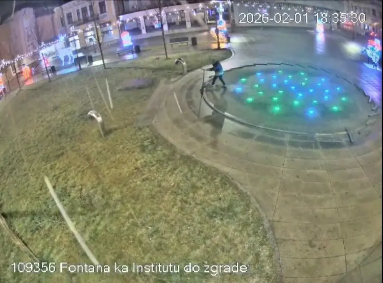 Након прегледа снимака са сигурносних камера, јасно је утврђено да је до одвајања бетонских коцки око једне од фонтана дошло искључиво људским фактором. На снимцима се види како непознато лице, користећи тротинет, систематски и намерно једну по једну одваја бетонске елементе са фонтане, која је у зимском режиму рада и привремено искључена због ниских температура.