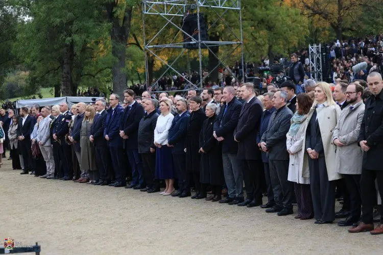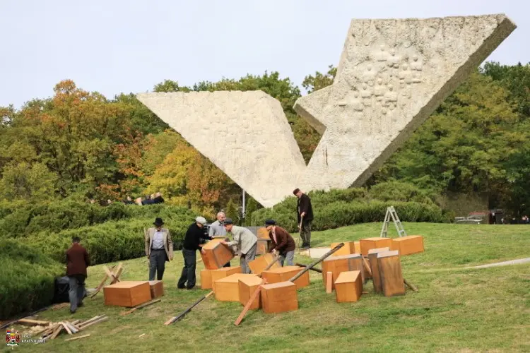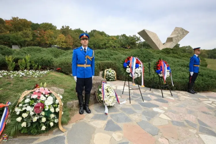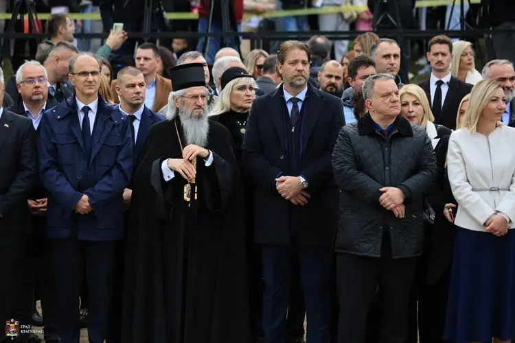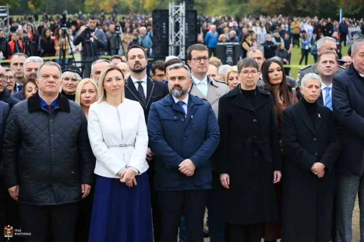 Wreaths were laid at the Monument to the Shot Students and Teachers by the teachers and students of the First Grammar School, on behalf of the Government of the Republic of Serbia, Prime Minister Đuro Macut, accompanied by the Minister of Education Dejan Vuk Stanković, the President of the Constitutional Court Snežana Marković, the Mayor of Kragujevac Nikola Dašić, the President of the City Assembly Ivica Momčilović, representatives of the Serbian War Veterans' Union (SUBNOR), the diplomatic corps, the City of Kragujevac's sister cities, the University, national and local institutions, associations, organizations, and political parties.