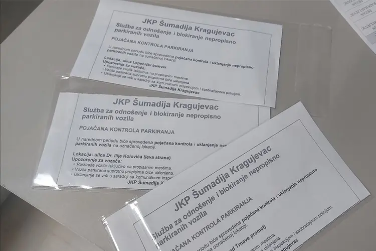 Javno komunalno preduzeće "Šumadija" Kragujevac obaveštava građane da će u saradnji sa Odeljenjem saobraćajne policije i Komunalne milicije grada Kragujevca u narednom periodu biti sprovedena akcija pojačane kontrole i uklanjanja nepropisno parkiranih vozila na 19 lokacija u gradu.