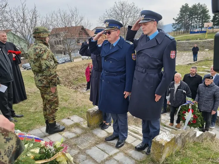 Kraj spomenika Talac, vence su položile delegacije Vojske Srbije, GO SUBNOR-a Kragujevac, Topola i Rača, Udruženja veterana Vojne policije Srbije, zdravstvenih institucija, porodice poginulih rodoljuba.