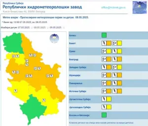 За подручје Шумадије наранџасти метео-аларм издат за 6.мај