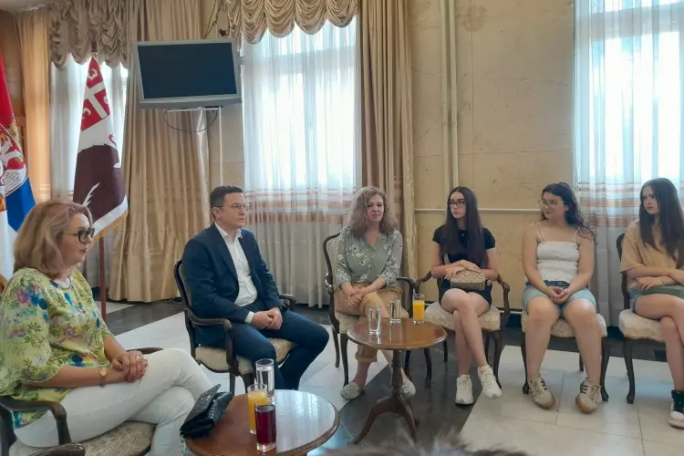 Град Крагујевац је и ове године домаћин најбољим ученицима основних школа из побратимског града Питештија, који у оквиру традиционалне размене бораве у нашем граду. Тим поводом, Марко Јанковић, помоћник градоначелника за развој и унапређење локалне самоуправе, организовао је пријем у згради Градске управе.
