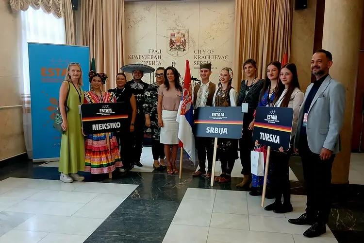 За учеснике Међународног фестивала фолклора ЕСТАМ, који се у организацији Студентског културног центра и под покровитељством Министарства културе и Града Крагујевца одржава трећу годину за редом, организован је свечани пријем у згради Градске управе. Пријему су присуствовале Ана Петровић Јелић, чланице Градског већа за културу и Ивана Мараш, директорка СКЦ-а, као и чланови ансамбала из Мексика, Турске и Србије.