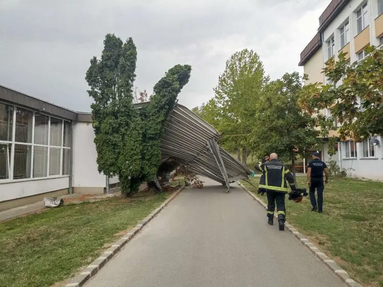 Све последице невремена на територији града су саниране, а у току је уклањање оштећене кровне конструкције на згради ТУШ „Тоза Драговић“.