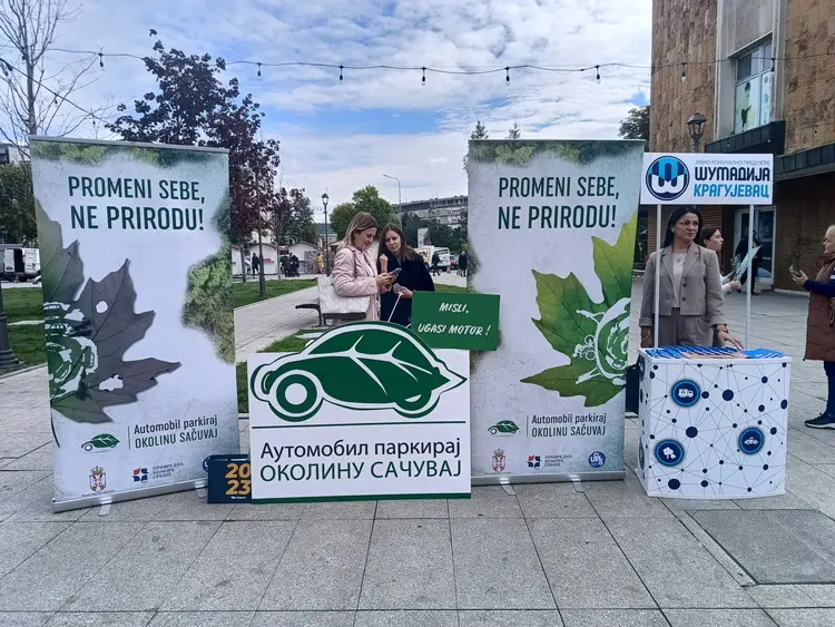 Планови и активности које локална самоуправа и Организациона целина Паркинг предузимају у циљу развоја одрживих видова саобраћаја попут изградње зелених гаража, промовисања бициклистичког саобраћаја, пешачења и употребе електричних аутомобила, представљени су данас на Тргу војводе Радомира Путника у оквиру кампање „АУТОМОБИЛ ПАРКИРАЈ, ОКОЛИНУ САЧУВАЈ“. Уз подршку Министарства заштите животне средине и Привредне коморе Србије, Удружење паркиралишта Србије већ шесту годину спроводи ову кампању по регионалним центрима Србије, а промотивне активности у Крагујевцу реализоване су у сарадњи са ЈКП „Шумадија“. Промоцији су у име Града присуствовали Стефан Јовановић, члан Градског већа за комуналне делатности и Стефан Никезић, члан Градског већа за унапређење и заштиту животне средине.