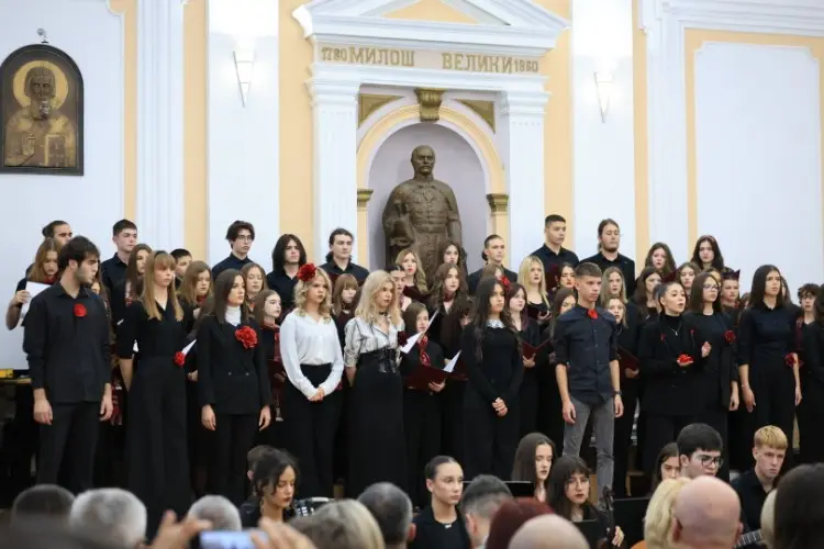 Догађај који нас је окупио најтрагичнија је страница у нашој историји која нас подсећа на страдање, бесмисао рата, покушај будућности гашења једног народа. Једина кривица оних који су се тог дана преселили у вечност је то што су били у свом граду, у својој школи и на свом месту. Данас по ко зна који пут поново кажемо да не заборављамо. Кроз стихове и ноте обнављамо завет због оних који више не могу да говоре – да ћемо наставити да учимо, мислимо и негујемо мир. Поносни смо што сећање траје, што се нисмо предали забораву и што из године у годину враћамо глас, поручила је у свом обраћању Славица Марковић, директорка Прве крагујевачке гимназије.