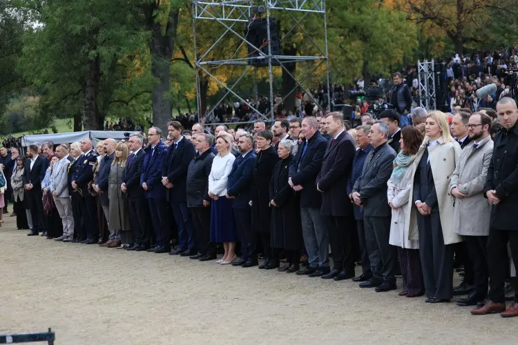 Венце су крај Споменика стрељаним ђацима и професорима положили професори и ученици Прве крагујевачке гимназије, у име Владе Републике Србије, премијер Ђуро Мацут у пратњи министра просвете Дејана Вука Станковића, председница Уставног суда Снежана Марковић, градоначелник Крагујевца, Никола Дашић и председник Скупштине града Ивица Момчиловић, СУБНОР-а Србије, представници дипломатског кора, градова пријатеља и побратима Крагујевца, Универзитета, републичких и градских институција, удружења, организација и политичких партија.