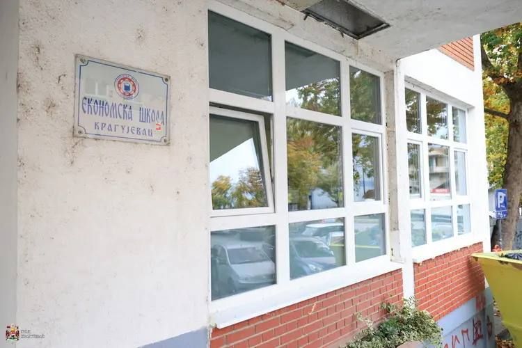 На згради Економске школе у Крагујевцу, након више од 50 година, замењена је комплетна спољашња столарија и остало је још само неколико естетских дорада до коначног завршетка свих радова. Изворна дрвена столарија на овој школи није мењана од дана када је зграда усељена тако да многи прозори нису могли да се затворе, пропуштали су воду и хладноћу. Радови су трајали три недеље и за то време, из безбедносних разлога, часови су одржавани у Другој крагујевачкој гимназији. Сада ће ученицима боравак у школи бити много пријатнији и то је, осим огромне уштеде енергије, највећа предност коју је замена столарије донела, казао је Алексић.