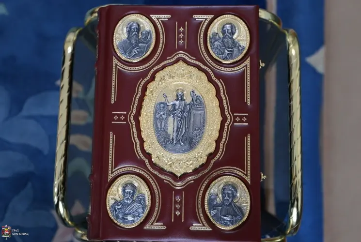 Честитајући руководству Богословије, професорима, ученицима и добротворима истакао да ова школа има посебно место у духовном, културном и васпитном животу града. Том приликом, у знак поштовања и подршке раду ове установе, градоначелник је ректору богословије Зорану Крстићу уручио Свето Јеванђеље.