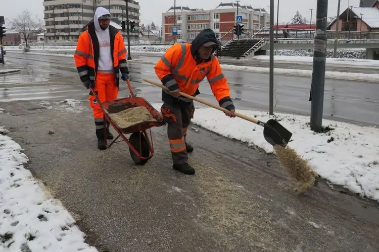 - ангажовање екипа зимске службе на уклањању снега са коловоза по унапред утврђеном распореду, обилазак критичних локација и по потреби посипање агрегатом и сољу коловоз и тротоаре, у складу са Програмом зимске службе