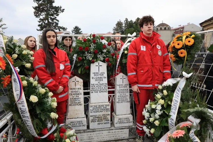 После пријема у градској кући, крај споменика др Елизабет Рос и чланица британске санитетске мисије на Варошком гробљу, Његово високопреосвештенство митрополит шумадијски Јован са свештенством Шумадијске епархије служили су помен, а венце су положиле делегације амбасада и представници установа и институција.