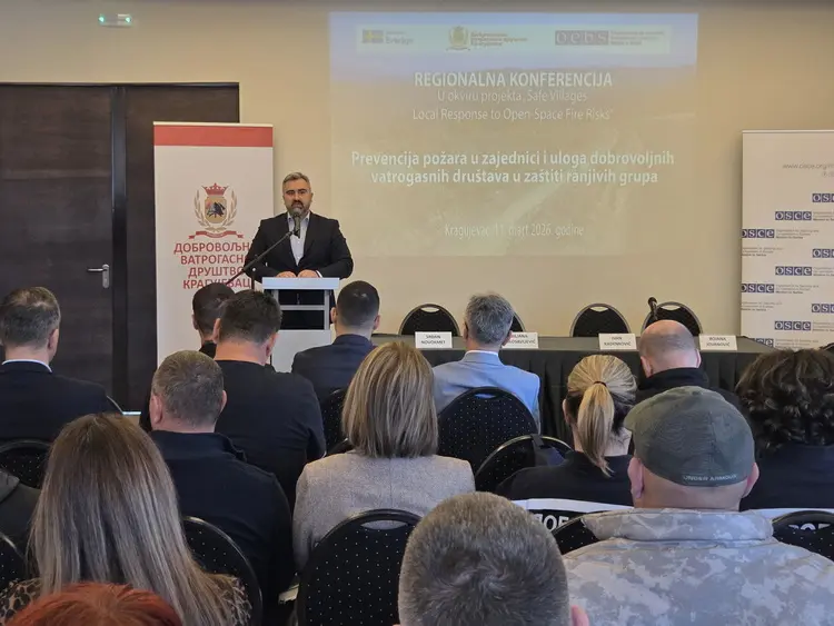 Град Крагујевац данас је био домаћин регионалне конференције под називом „Превенција пожара у заједници и улога добровољних ватрогасних друштава у заштити рањивих група“ која је одржана у хотелу „Крагујевац“. Конференција се организује у оквиру пројекта „Безбедна села – локални одговор на ризике од пожара на отвореном простору“ који реализује Добровољно ватрогасно друштво Крагујевац уз подршку Мисије ОЕБС-а у Србији и финансијску подршку Владе Шведске. Конференција је окупила представнике Сектора за ванредне ситуације МУП-а Републике Србије, Ватрогасног савеза Србије, као и представнике служби и добровољних ватрогасних друштава из региона – Босне и Херцеговине, Северне Македоније и Црне Горе.