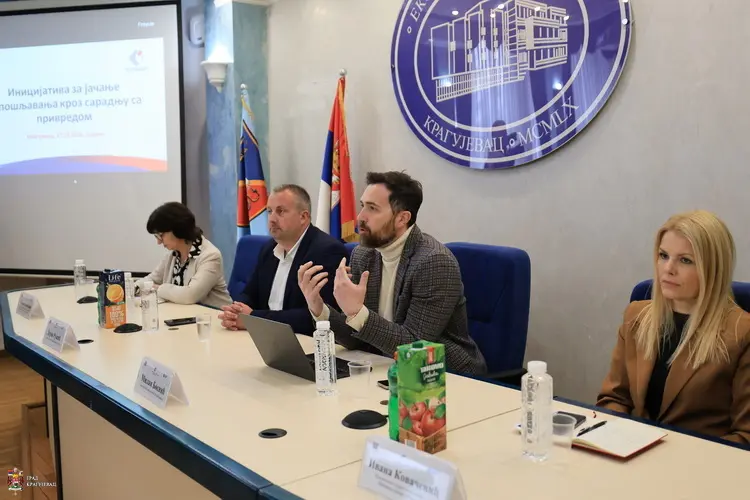 У оквиру Иницијативе за јачање запошљавања кроз сарадњу са привредом данас је, у организацији Града Крагујевца, Регионалне привредне коморе Шумадијског и Поморавског управног округа и Националне службе за запошљавање, на Економском факултету у Крагујевцу одржан састанак са послодавцима. Састанку су присуствовали в.д. директора НСЗ, Милан Боснић, директор Регионалне привредне коморе Шумадијског и Поморавског управног округа, Предраг Лучић, а у име Града заменик градоначелника, Дејан Ружић.