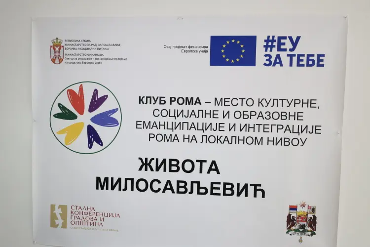 Пројекат „Клуб Рома – место културне, друштвене и образовне еманципације и интеграције Рома на локалном нивоу“, је део трогодишњег пројекта Европске уније под називом „Подршка одрживим услугама социјалне заштите у заједници и политикама укључивања на локалном нивоу“ добијен из ИПА програма 2020 од стране Министарства за рад, запошљавање, борачка и социјална питања. Подршка овом пројекту је Министарство финансија, а имплементациони партнер је Стална конференција градова и општина СКГО.
