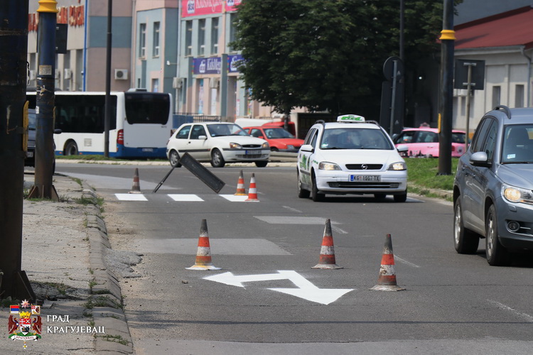 Служба сигнализације ЈКП “Шумадија“ обележава хоризонталну сигнализацију у улицама Кнеза Михаила, Атинској и Светогорској. Истовремено, обављају се радови на поправци и замени недостајуће вертикалне сигнализације на свим градским саобраћајницама.