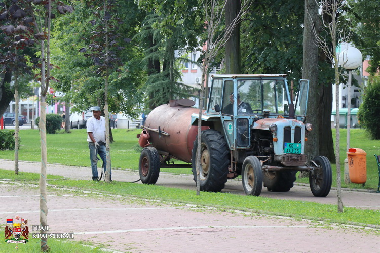 Радници Јавно комуналног предузећа “Шумадија“ интензивно косе и одржавају зелене површине у Спомен парку Шумарице код Споменика стрељаним ђацима и простору око цркве, затим у насељу Централана радионица и Палилулском потоку, као и на простору код Дома синдиката, Робне куће Београд и на Тргу код Крста. Поред тога, окопавају се дрвореди у Главној улици и Булевару Краљице Марије.