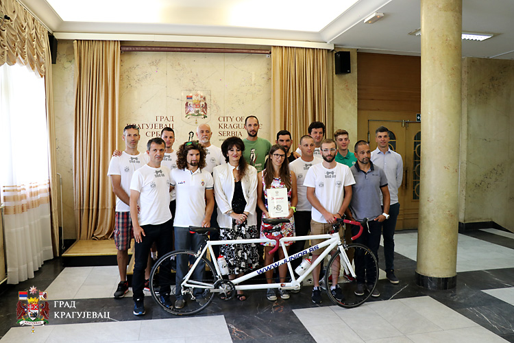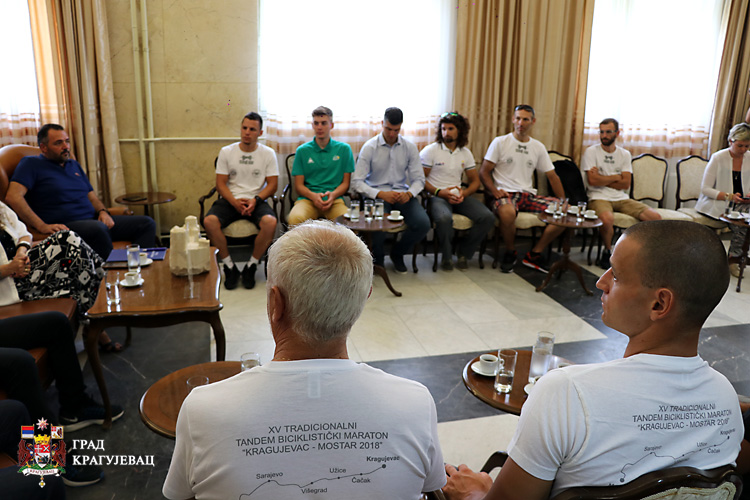 За учеснике Тандем бициклистичког маратона “Крагујевац-Ужице-Вишеград-Сарајево-Мостар 2018“ представници града Гордана Дамњановић и Никола Урошевић, организовали су пријем у згради Градске управе.