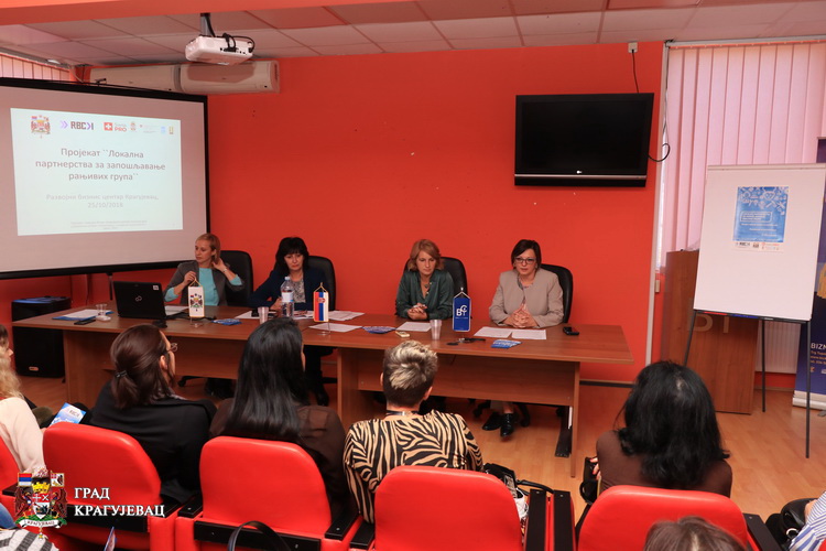 У Бизнис иновационом центру у партнерској организацији Развојног бизнис центра Крагујевац и Града Крагујевца данас је представљен пројекат ''Локална партнерства за запошљавање рањивих група''. Пројекат се реализује у оквиру Програма Свис ПРО ''Подршка Владе Швајцарске за унапређење доброг управљања и социјалне укључености на локалном нивоу'', који заједнички спроводе Канцеларија Уједињених нација за пројектне услуге (УНОПС) и Стална конференција градова и општина (СКГО).
