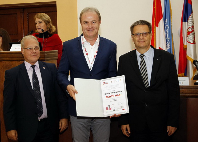 У име града Крагујевца, сертификат је примио проф. др Недељко Манојловић, члан градског већа за образовање, који се у име града захвалио представницима Владе Швајцарске на указаном поверењу у спровођењу пројекта под слоганом “Нове идеје по мери заједнице“.