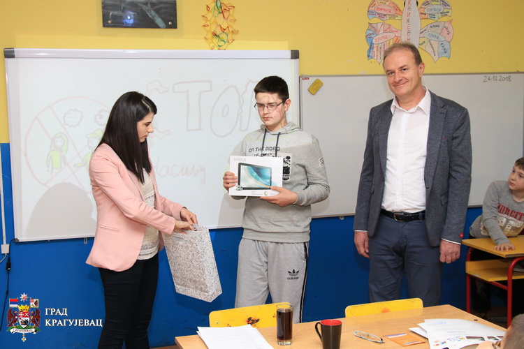 У просторијама ОШ Драгиша Луковић Шпанац у присуству члана Градског већа, проф. др Манојловића, Невене Миловановић, директорке ове основне школе награде ауторима најбољих радова уручила је Неда Стојановић, менаџер пројекта. Прва награда, таблет рачунар и три карте за биоскоп, припала је Лазару Илићу, ученику осмог разреда ОШ Драгиша Луковић Шпанац. Друго место освојила је Нађа Илић, ученица петог разреда ОШ Драгиша Михаиловић а треће место Милошу Петровићу, ученику петог разреда ОШ 21. октобар. На конкурс је пристигло нешто више од 60 радова узраста петог до осмог разреда али су, према речима организатора, стизали радови и млађих ђака па су додељене и специјалне награде за ученицима основне школе у Доњој Сабанти.