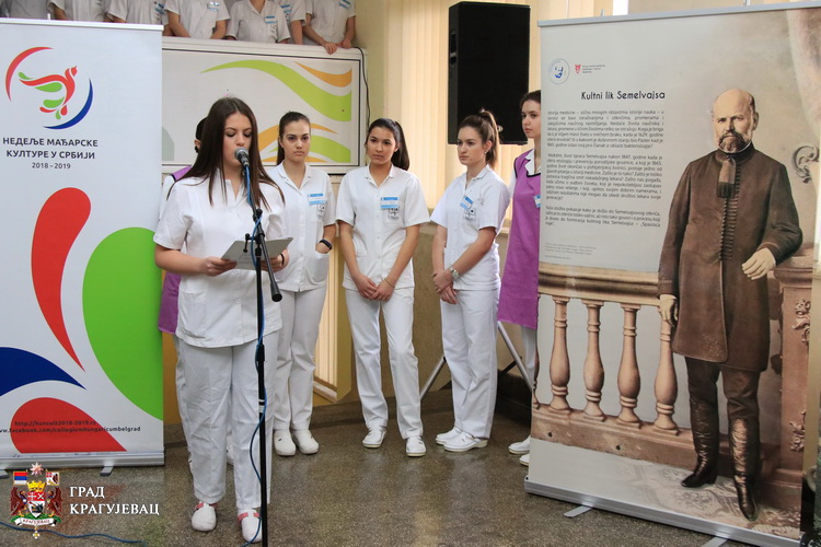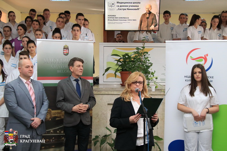Изложба “Култни лик Семелвајса”, којом се обележава 200 година од рођења мађарског научника и лекара Игнаца Семелвајса чије је откриће узрока и превентивних мера за спречавање породиљске грознице спасло животе милиона мајки, отворена је данас у Медицинској школи „Сестре Нинковић”. Изложба посвећена Семелвајсу, приређена је у оквиру Недеље мађарске културе у Србији, коју организује амбасада Мађарске у Београду у сарадњи са Collegium Hungaricum, а подршку у организацији ове документарне изложбе у Крагујевцу дала је и локална самоуправа.
