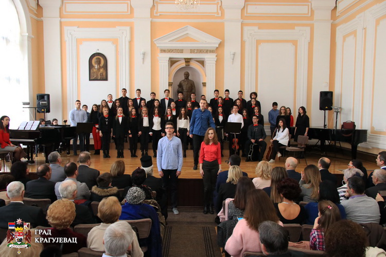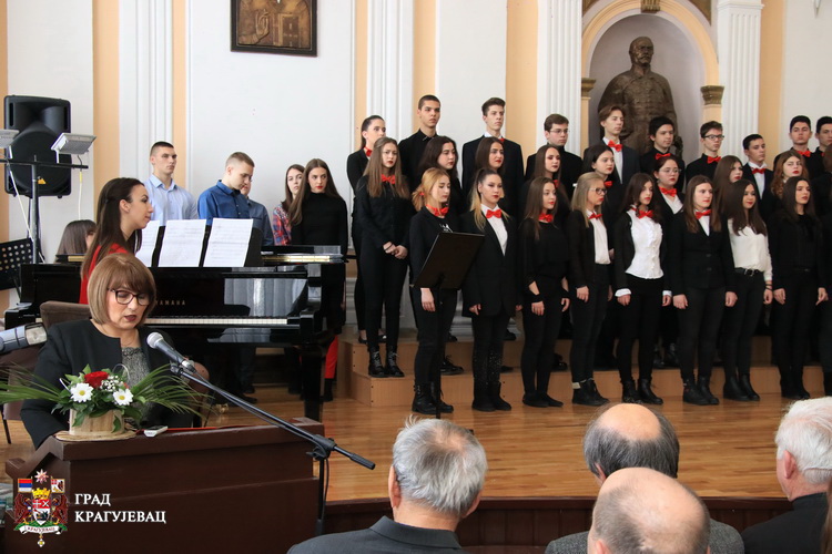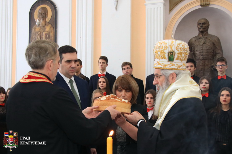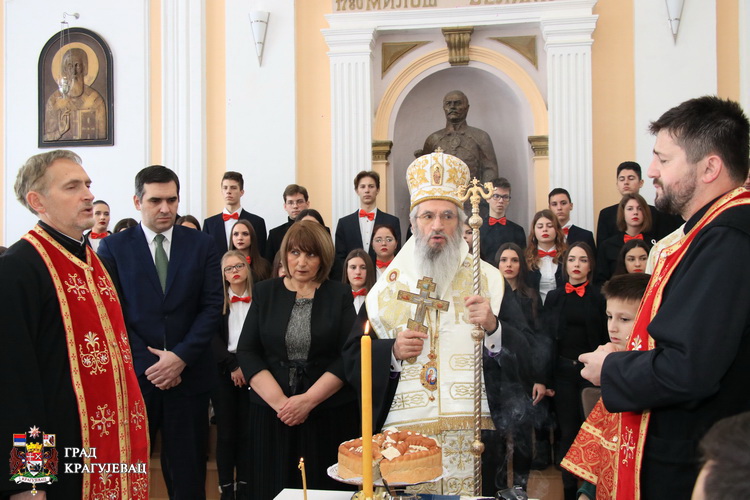 Свечаном академијом у Првој крагујевачкој гимназији, под покровитељством града Крагујевца, обележена је школска слава Свети Сава. Академији су присуствовали Његово преосвештенство владика шумадијски Јован са свештенством Епархије шумадијске, градоначелник Радомир Николић са сарадницима, председник Скупштине града Мирослав Петрашиновић, начелница Шумадијског управног округа Биљана Илић – Стошић, представници Војске и МУП – а Србије, Школске управе, Универзитета, директори школа и представници осталих градских институција.