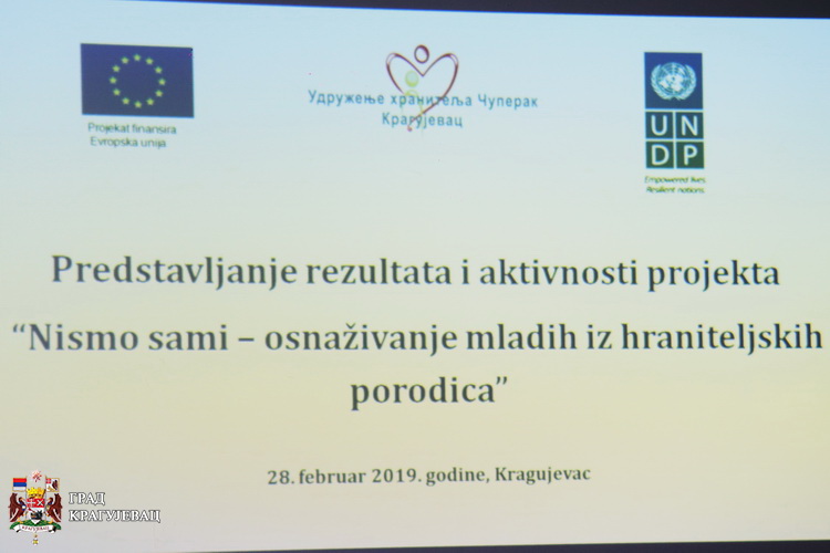У Центру за породични смештај и усвојење данас је одржана завршна конференција у оквиру пројекта Нисмо сами - оснаживање младих из хранитељских породица на којој су представљене реализоване активности и резултати. Пројекат су партнерски реализовали Удружење хранитеља Чуперак и Урадимо заједно уз подршку локалне самоуправе града Крагујевца у оквиру Регионалног програма локалне демократије на Западном Балкану РеЛОаД који финансира ЕУ а спроводи програм Уједињених нација за развој УНДП.