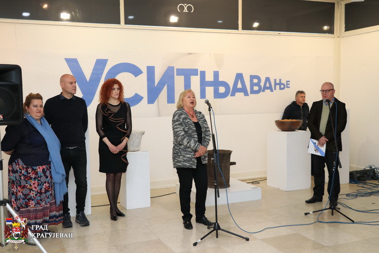 Изложбу у Галерији Народног музеја у Крагујевцу отворила је проф. Љубинка Трговчевић, која је рекла да су већини старијих посетилаца изложени предмети чине потпуно познати, и поједини их као украсне предмете чувају у својим домовима. Имајући у виду да смо у ери нових технологија, која је донела савремене начине уситњавање хране различитим апаратима, изложени предмети су младим генерацијама ипак страни. Зато сматрам, казала је проф. Трговчевић да је подсећање на предмете које су наши преци имали у кућама важно, а посебно због тога јер је реч о једној од најстаријих алатки људског рода.
