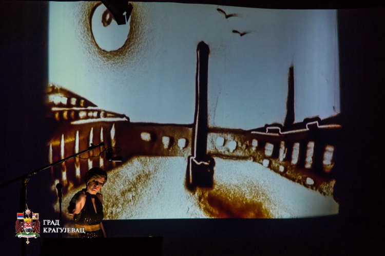 На свечаном отварању фестивала наступила је Ана Конноненко, која је извела представу "Крагујевац у пешчаним траговима". Користећи покретну технику, уметница ствара дело у песку, а као резултат тог рада настаје пешчани филм, који је публику и госте из света упознао са историјом града Крагујевца и овогодишњим учесницима „Златне Искре“. Након филма, публици се представила балетска школа "Аплауз" из Крагујевца.