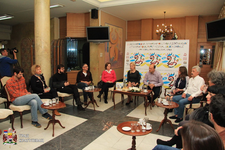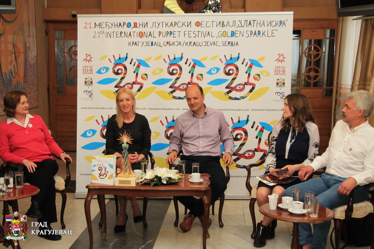 У Свечаном салону Градске управе Миљан Бјелетић члан Градског већа за културу организовао је пријем за учеснике, организаторе и чланове жирија 21. Међународног луткарског фестивала Златна искра, који је синоћ отворен пешчаним филмом Ане Кононенко „Крагујевац у пешчаним траговима“.