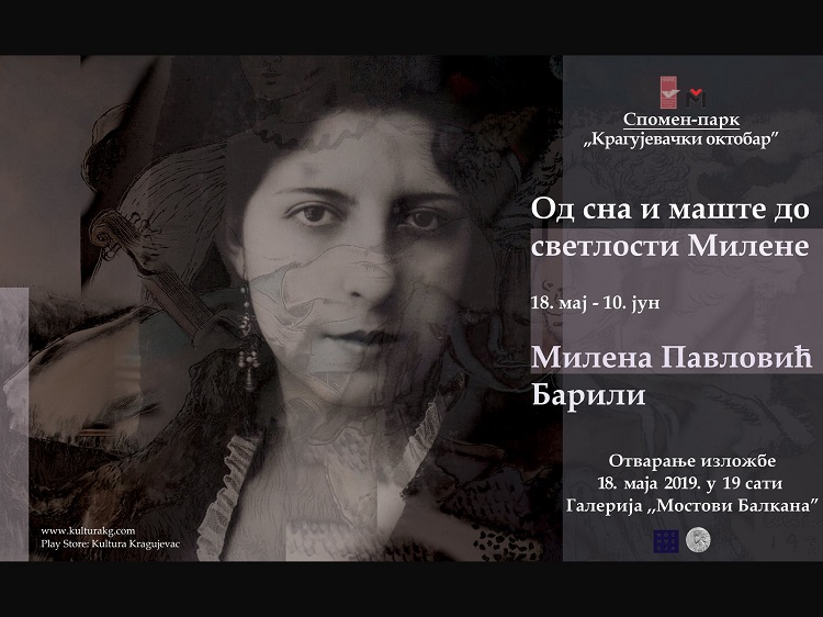 У 19.00 сати, у Градској галерији „Мостови Балкана“ биће отворена изложба слика Милене Павловић Барили из уметничког фонда Фондације Миленин дом – Галерија Милене Павловић Барили. Изложба је организована у сарадњи установа: Спомен-парк „Крагујевачки октобар“ – Градске галерије „Мостови Балкана“ Крагујевац и Фондације Миленин дом – Галерије Милене Павловић Барили. Изложба је део богате збирке и садржи 14 слика, три илустрације и четири лична предмета. Изложба ће бити отворена до 10. јуна 2019.