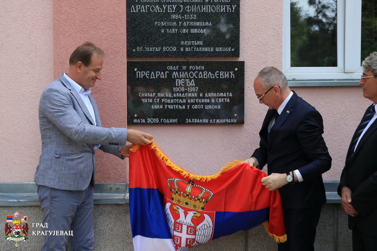 Након пригодног културно-уметничког програма, који су припремили ученици и наставници школе, откривена је Спомен - плоча Предрагу Пеђи Милосављевићу, академику, сликару, писцу и дипломати пореклом из Лужница.
