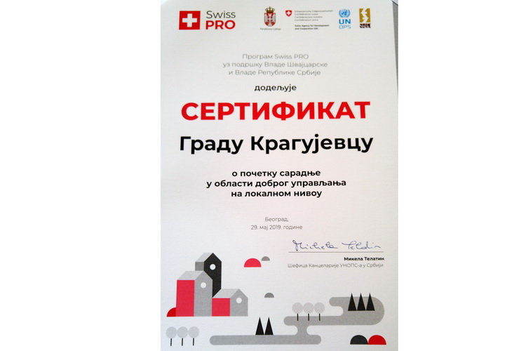 Град Крагујевац је једна од 96 локалних самоуправа чији су представници у Београду са програмом Swiss PRO, који подржава Влада Швајцарске, потписали Меморандум о разумевању у области доброг управљања. Тиме су постављене основе за изградњу капацитета и ресурса и почетак дугорочног процеса утемељивања принципа доброг управљања у раду и функционисању локалних администрација, који ће за резултат имати побољшан квалитет пружања услуга за грађане. У име града Крагујевца Меморандум је потписао Ивица Момчиловић заменик градоначелника.