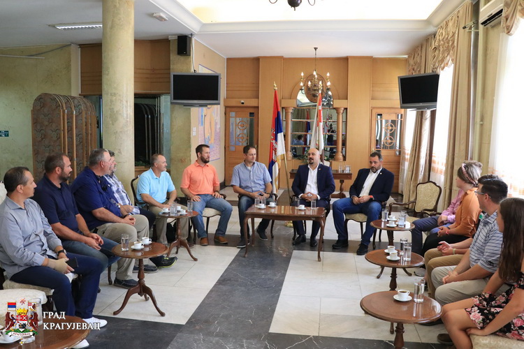 За професионалне бејзбол тренере из Тексаса, САД, Милера Волни Сканлана, Рона Фимстера и њихове сараднике који су протеклог викенда одржали Бејзбол камп за младе Крагујевчане и њихове домаћине, бившег тренера и једног од оснивача Дивљих вепрова Џејмса Скивалија и актуелног тренера и председника клуба Миљана Ђуровића, председник Скупштине града Мирослав Петрашиновић и помоћник градоначелника за спорт Никола Урошевић организовали су пријем.
