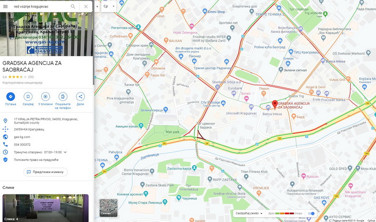 Захваљујући пројекту „Податке отвори, на мапи се створи“ који је реализован у сарадњи са Палго смарт центром из Београда, а уз подршку Програма Уједињених нација за развој (УНДП), Крагујевац је у апликацији Google maps имплементирао све линије система јавног градског и приградског превоза. То ће путницима, али и свим посетиоцима града омогућити да у најкраћем времену стигну на жељену локацију. Одређивањем полазне тачке и крајњег одредишта у апликацији Google maps на паметном телефону, апликација Google transit нуди, најповољнију трасу уз навигацију, колико је и куда потребно пешачити до првог стајалишта, број линије и време поласка, а уколико је то потребно и број линије за преседање до крајње дестинације.