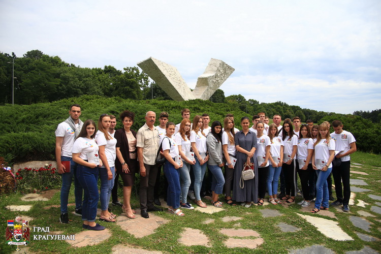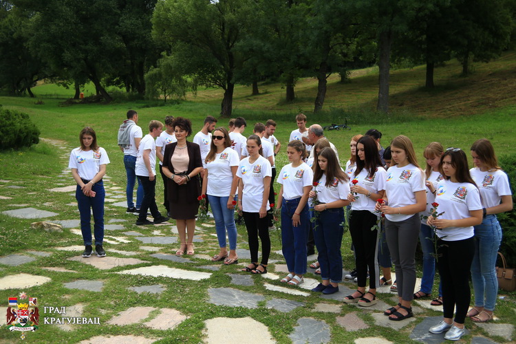 Реч је о младим уметницима који у мисији чувања сећања на страдале војнике и цивиле у Другом светском рату, Путевима славе и сећања посећују велика стратишта и места по Европи на којима су остали многи невини животи. Једно од таквих места је и град Крагујевац, рекла је др Гордана Дамњановић, чланица Градског већа и захваљујући се делегацији што заједно са српским народом чувају историју страдања наша два народа и што заједно са нама са места које опомиње на безумље рата шаљу антиратне поруке свету, рекла је да су увек добродошли.