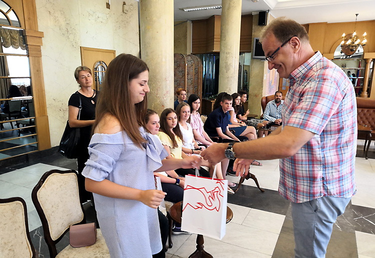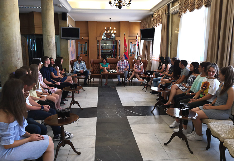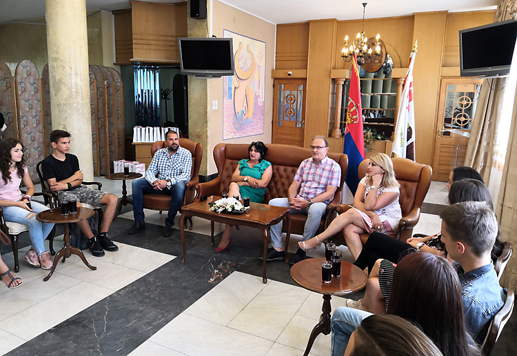На пријему професор Манојловић је ученицима говорио о дугогодишњој доброј сарадњи са румунским градом Питештијем успостављеној 1971. године као и о традицији размене ученика, упознао их са програмом међународне размене ученика и да поред Питештија, ученици средњих школа путују у Сирен, те да им то може бити добра мотивација да наставе и у средњој школи са добрим владањем и високим оценама.