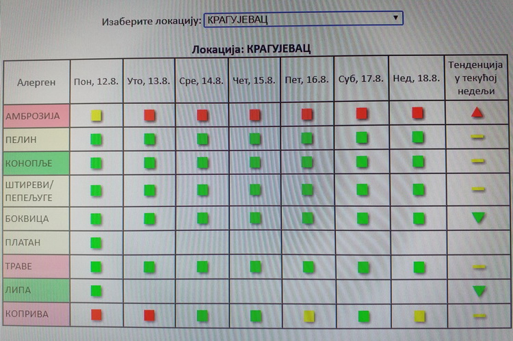 Иначе, временске прилике утицале су да ове године амброзија цвета касније, па су тренутно концентрације њеног полена у ваздуху веома високе. У Агенцији за заштиту животне средине кажу да ће до 8. септембра концентрација полена у ваздуху ове опасне алергене биљке бити изнад граничних вредности. Очекује се да ће се висок ниво задржати до краја октобра.