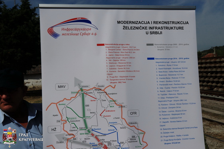 Иначе, вредност радова на реконструкцији пруге Лапово - Крагујевац, износи 11 милиона евра, а још четири милиона евра уложено је у санацију клизишта. Радове је сопственим средствима финансирала "Инфраструктура железнице Србије".