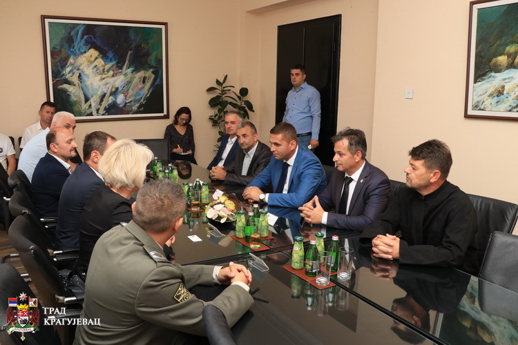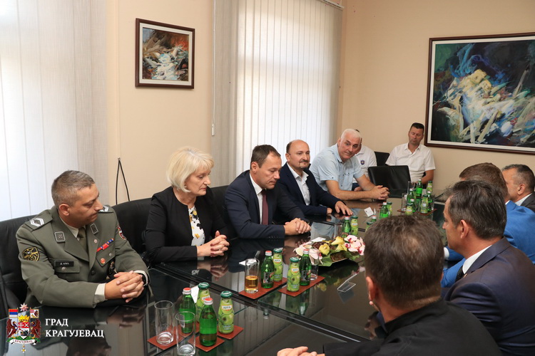 У зграде Градске управе организован је свечани пријем за делегацију општине Прњавор из Републике Српске, којa у Крагујевцу борав на иницијативу градског Удружења ратних војних инвалида и породица погинулих бораца Србије.