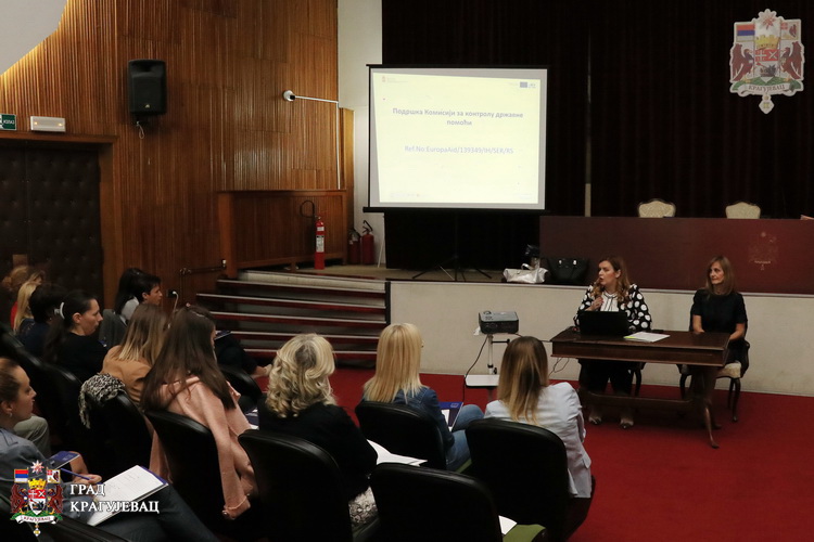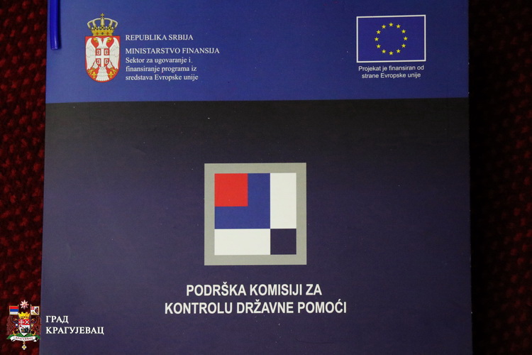 У оквиру пројекта Подршка Комисији за контролу државне помоћи за запослене у Градској управи Крагујевац одржана је обука о правилима и процедурама контроле државне помоћи. Пројектом управља Министарство финансија Републике Србије, Сектор за уговарање и финансирање програма, буџетом од 999 хиљада евра финансира Европска унија из претприступних (ИПА 2014) средстава а спроводи га Alternativ Consalting у сарадњи са компанијом DMI France и Саветом за заштиту конкуренције Републике Литваније.