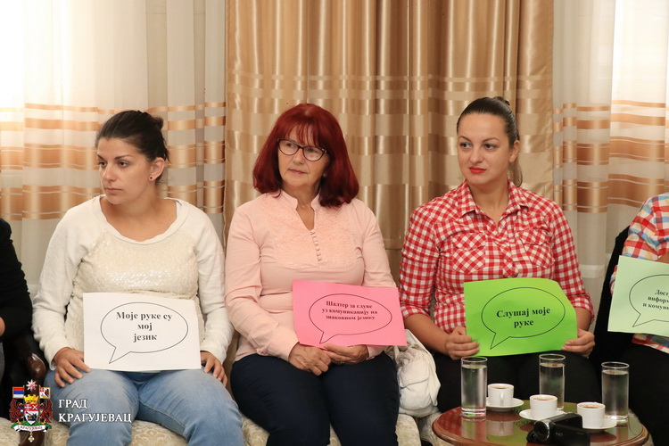 Поводом Међународног дана знаковних језика и Међународне недеље глувих, др Гордана Дамњановић чланица Градског већа за здравствену и социјалну заштиту са својим сарадницима организовала је пријем за представнике Удружења глувих и наглувих Шумадијског округа.