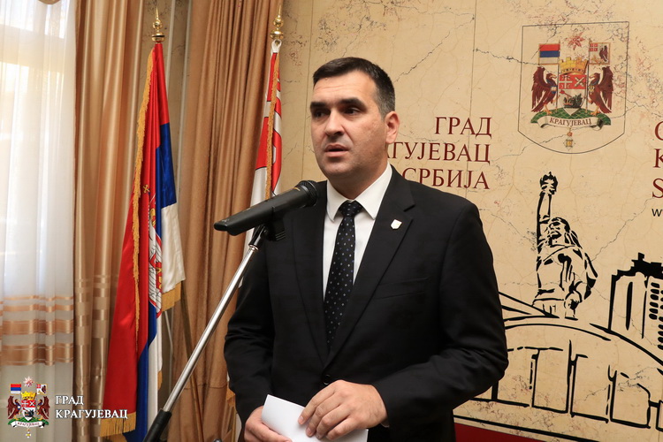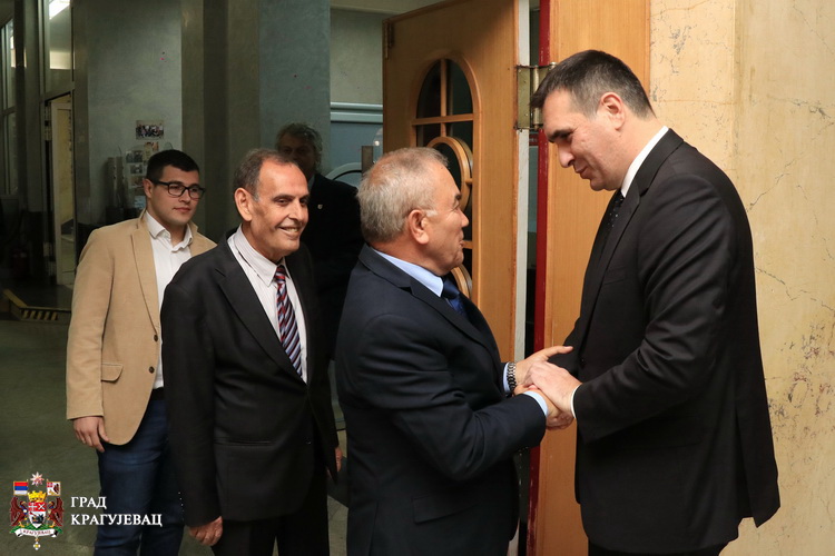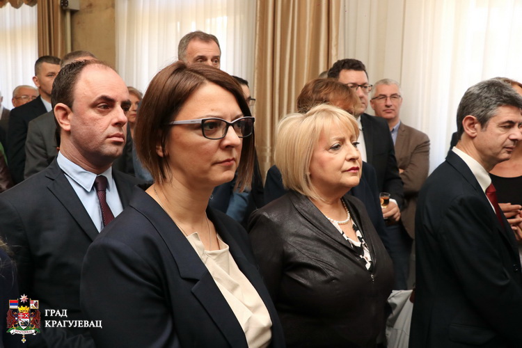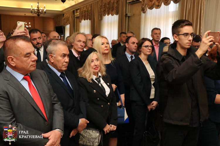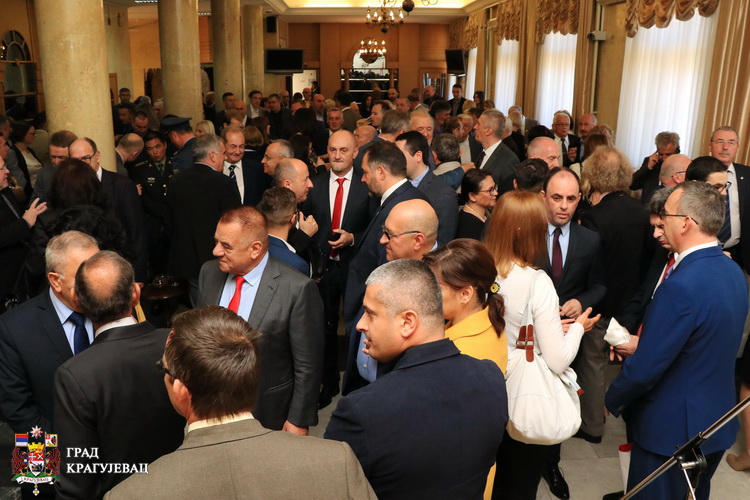 Градоначелник Крагујевца Радомир Николић са сарадницима је за госте и званице које су и овe године дошле у Крагујевац да обележе сећање на 21. октобар 1941. године, у згради Градске управе организовао је традиционални пријем.
