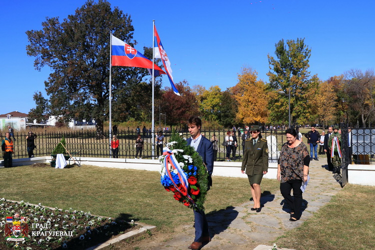 У част словачких побуњеника у Меморијалном комплексу министарка без портфеља задужена за демографску и популациону политику проф. др Славица Ђукић Дејановић и председник Скупштине града Крагујевца Мирослав Петрашиновић положили су венце.