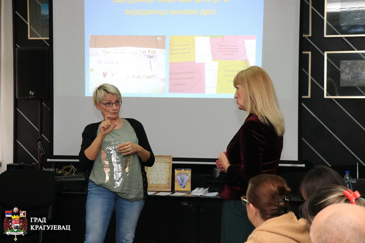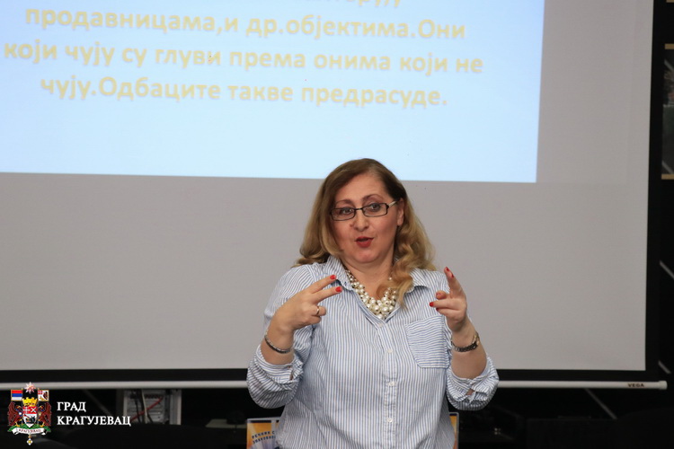 Удружење глувих и наглувих Шумадијског округа Крагујевац је за запослене у Градској управи организовало трибину о знаковном језику а у циљу упознавања са основним појмовима Закона о употреби знаковног језика и отклањања комуникацијских баријера.