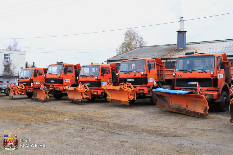 Изврешено је сервисирање и ремонт комплетне расположиве механизације која се користи у зимској служби, рекао је поред осталог Немања Димитријевић директор ЈКП Шумадија и додао да је обезбеђено преко 4000 тона индустријске соли, 5000 тона ризле и око 50 тона калцијум хлорида. Део тих количина је већ на лагеру, а остатак ће се набављати сукцесивно, у складу са потребама.