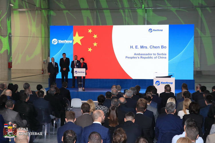 Да је Крагујевац право место за прву фабрику YFAI у Србији, сматра и амбасадорка Кине Чен Бо и додала да ће до 2023. године вредност производње достићи 76 милиона евра. Уверена сам да ће отварање фабрике користити развоју YFAI погона у Европи, али и економском просперитету Крагујевца, истакла је Чен Бо.