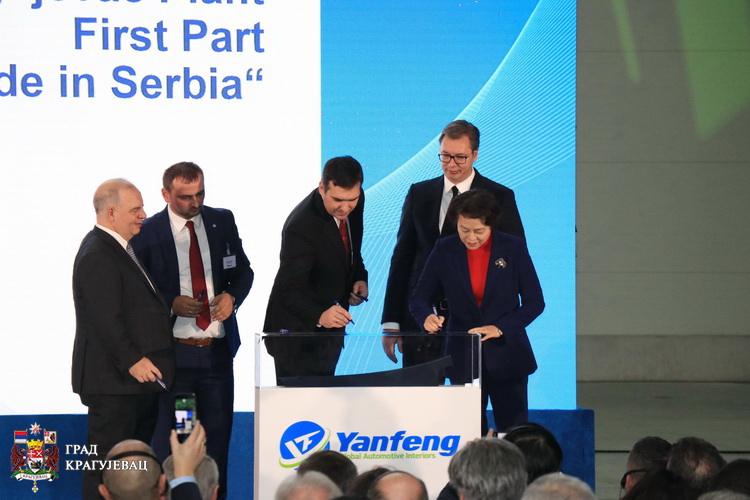 Свечаним пресецањем врпце данас је у Крагујевцу отворен погон кинеске фабрике Yanfeng Automotive Interiors, који ће производити комопоненте за унутрашњост аутомобила најпознатијих светских произвођача, међу којима је Мерцедес. Компанија чије је седиште у Шангају, има око 110 производних погона и техничких центара у 20 земаља широм света и више од 32.000 запослених.