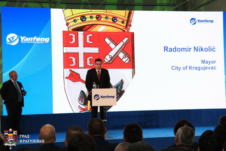 Yanfeng је прва велика кинеска компанија у Крагујевцу. У својој фабрици ће запослити 800 радника, 800 породица добиће још једну плату, промениће квалитет живота, казао је градоначелник Радомир Николић, захваљујући се Yanfeng - у што је препознао потенцијал Крагујевца и тиме постао део нашег великог и најзачајнијег пројекта – да српску младост и српску памет сачувамо у Србији.