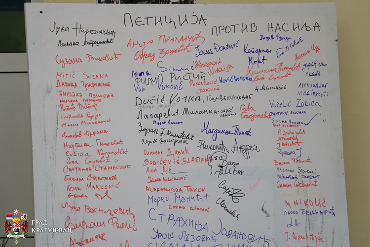 Иначе, град Крагујевац се Кампањи 16 дана ативизма против насиља, поред осталог, прикључио и тако што је Крст на улазу у Крагујевац осветљен наранџастом бојом.